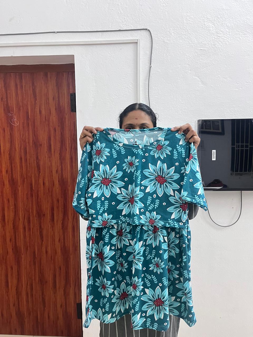 Designed for the modern mother, this turquoise feeding peplum top combines style with practicality. The zipless feeding design allows discreet nursing anywhere, while the fit-and-flare silhouette flatters your changing shape throughout pregnancy and beyond. Crafted from soft, stretchable cotton, it moves with your body for all-day comfort. The peplum detail adds a touch of sophistication to an essential maternity piece. Bump-friendly and versatile, this affordable top delivers both function and fashion without compromise.